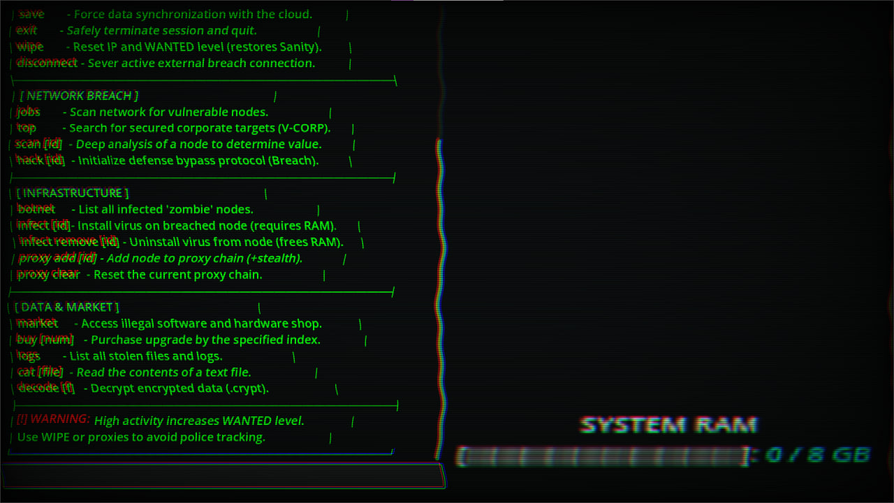 Dynamic Wanted System: The more you steal, the more they hunt you. Use the WIPE command and build proxy chains to throw off their trail before the SWAT team even sounds outside.